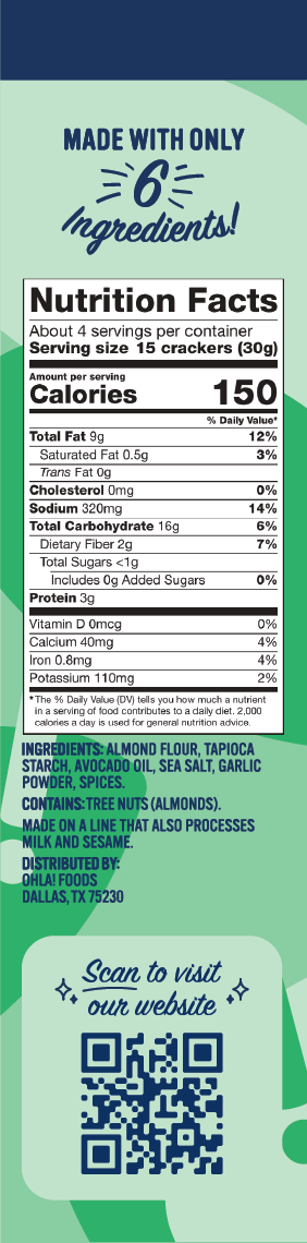 Almond Flour, Tapioca Starch, Olive Oil, Garlic Powder, Sea Salt, Spices